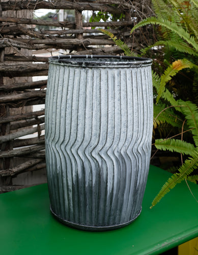 SoldMetal galvanized ribbed planter. Turn upside down to use as a bucket stool.